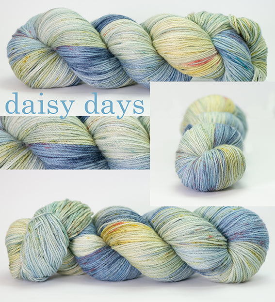 If combining light and dark colours, please test wash with a swatch as the dyes may bleed. This is most important with teals, reds and strong pinks.